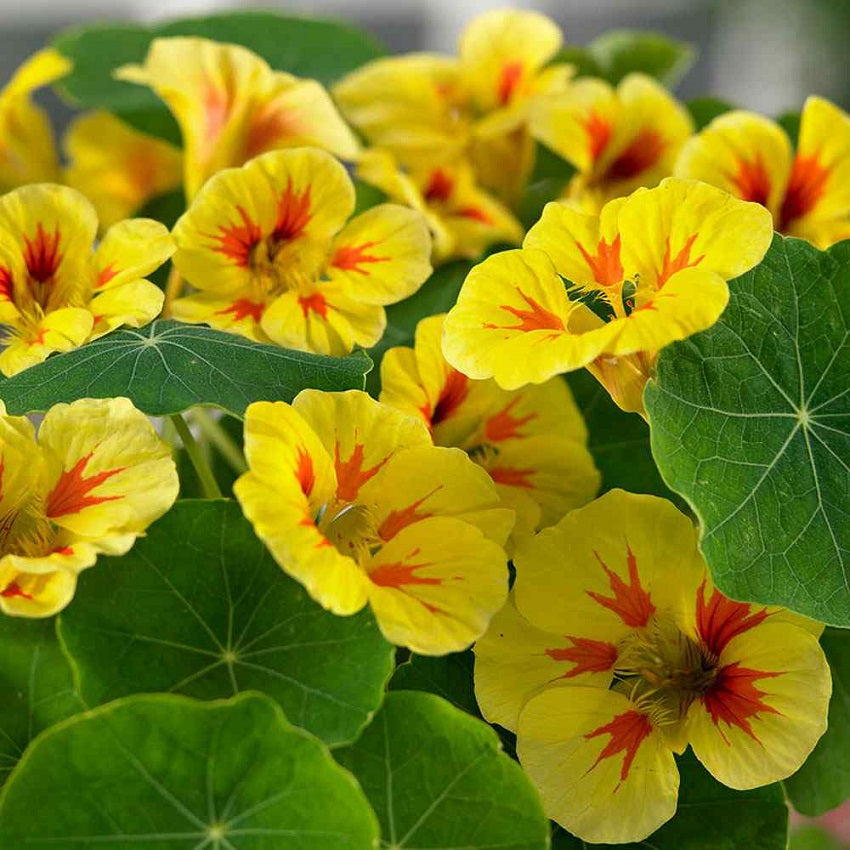 A very early Nasturtium Melba Peach these Nasturtium seeds are a nice variety to start they have creamy yellow flower with a red orange blotch in it. The Nasturtium Melba Peach is a free flowering plant that is great in hanging baskets and planters. This is a edible Nasturtium that is great in salads. This can be a perennial in frost free zones and likes a full sun area. This is for 50 seeds.